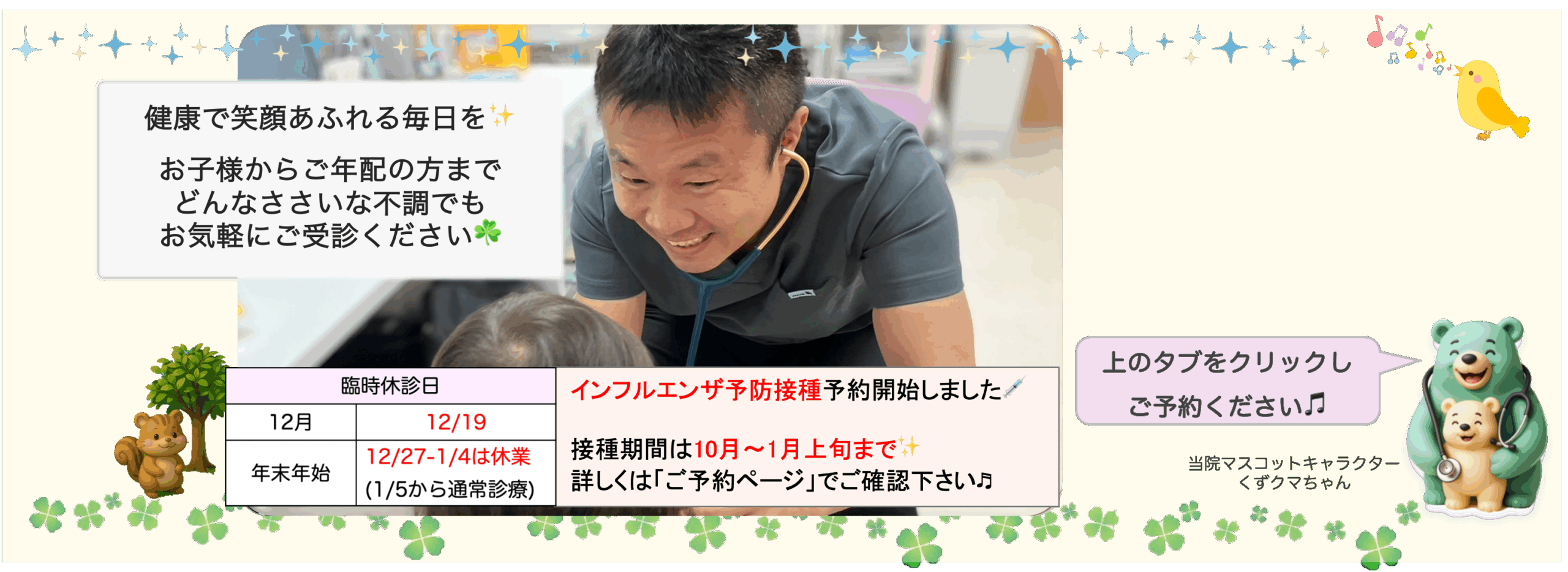年齢問わず・小児科内科問わず、ちょっとした不調でも気軽に"くずふぁ"をご受診くださいね✨